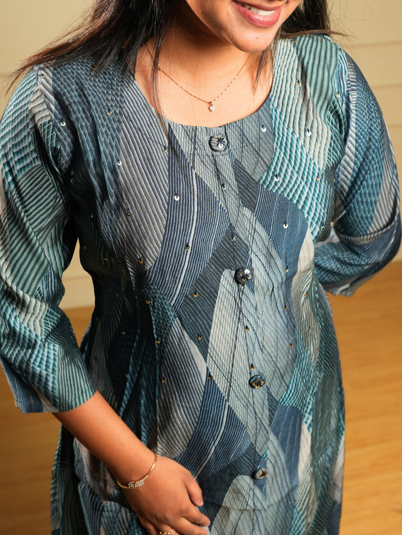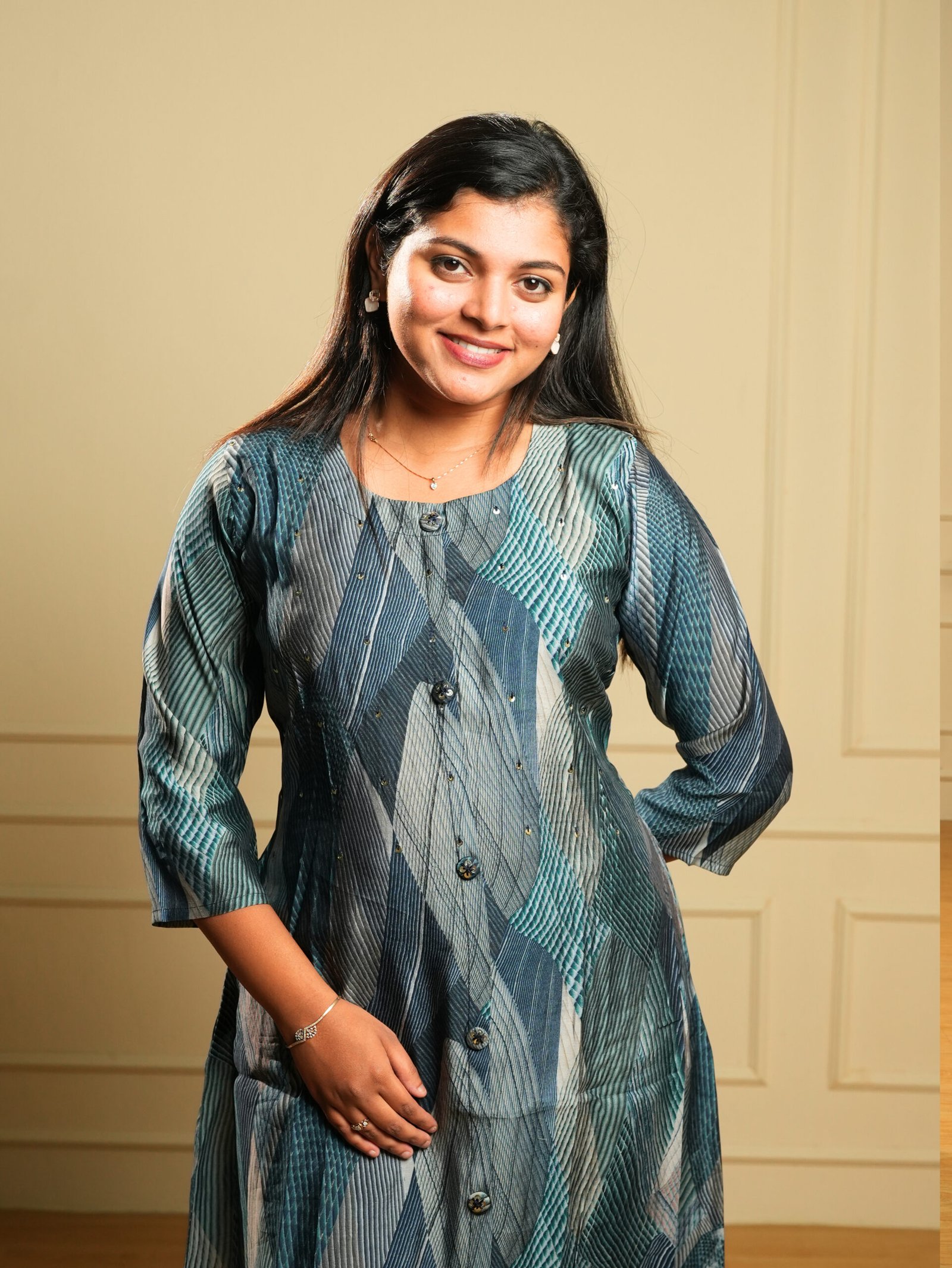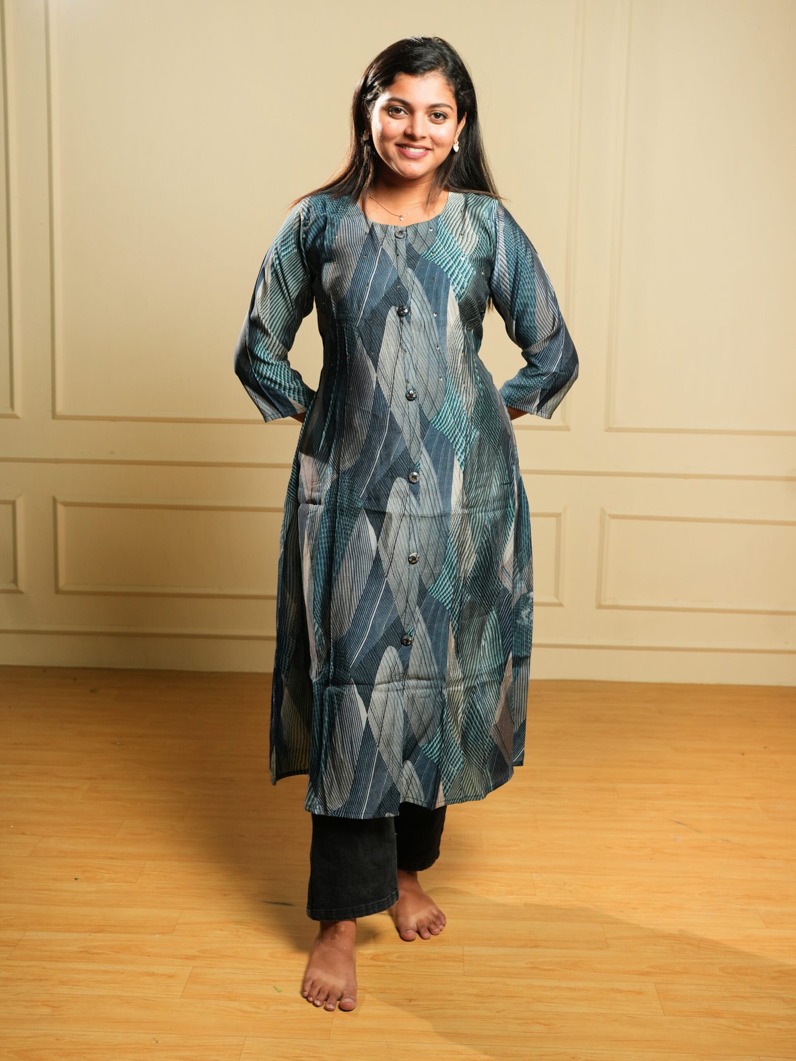 Refresh your ethnic wear collection with this blue abstract printed cotton kurta, designed for women who prefer comfort with a contemporary touch. Made from 100% pure cotton fabric, this kurta offers excellent breathability and softness, ensuring comfort throughout the day.