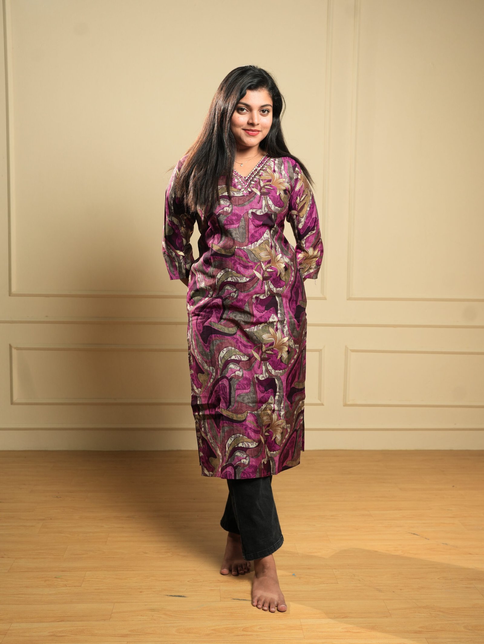 Add a pop of color to your ethnic wardrobe with this magenta abstract floral cotton kurti, designed for women who love bold yet elegant everyday fashion. Crafted from soft and breathable cotton fabric, this kurti ensures all-day comfort while maintaining a stylish appearance.