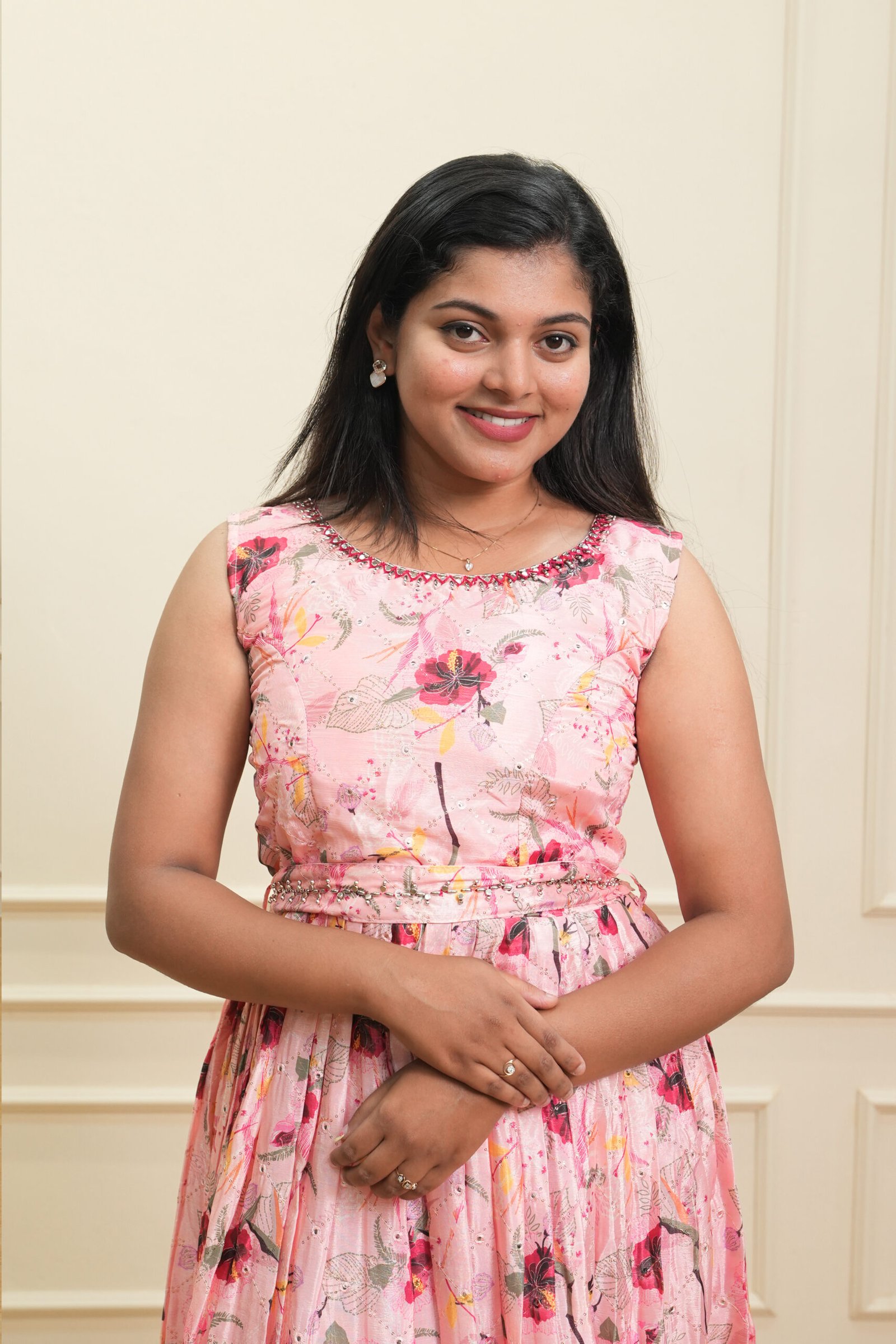 This pink floral sleeveless maxi dress offers the perfect combination of elegance, comfort, and charm. The dress is designed with an all‑over floral pattern in coordinated shades that enhance its soft, feminine appeal. The sleeveless bodice provides ease of movement and a relaxed fit, making it suitable for warm weather or indoor events.