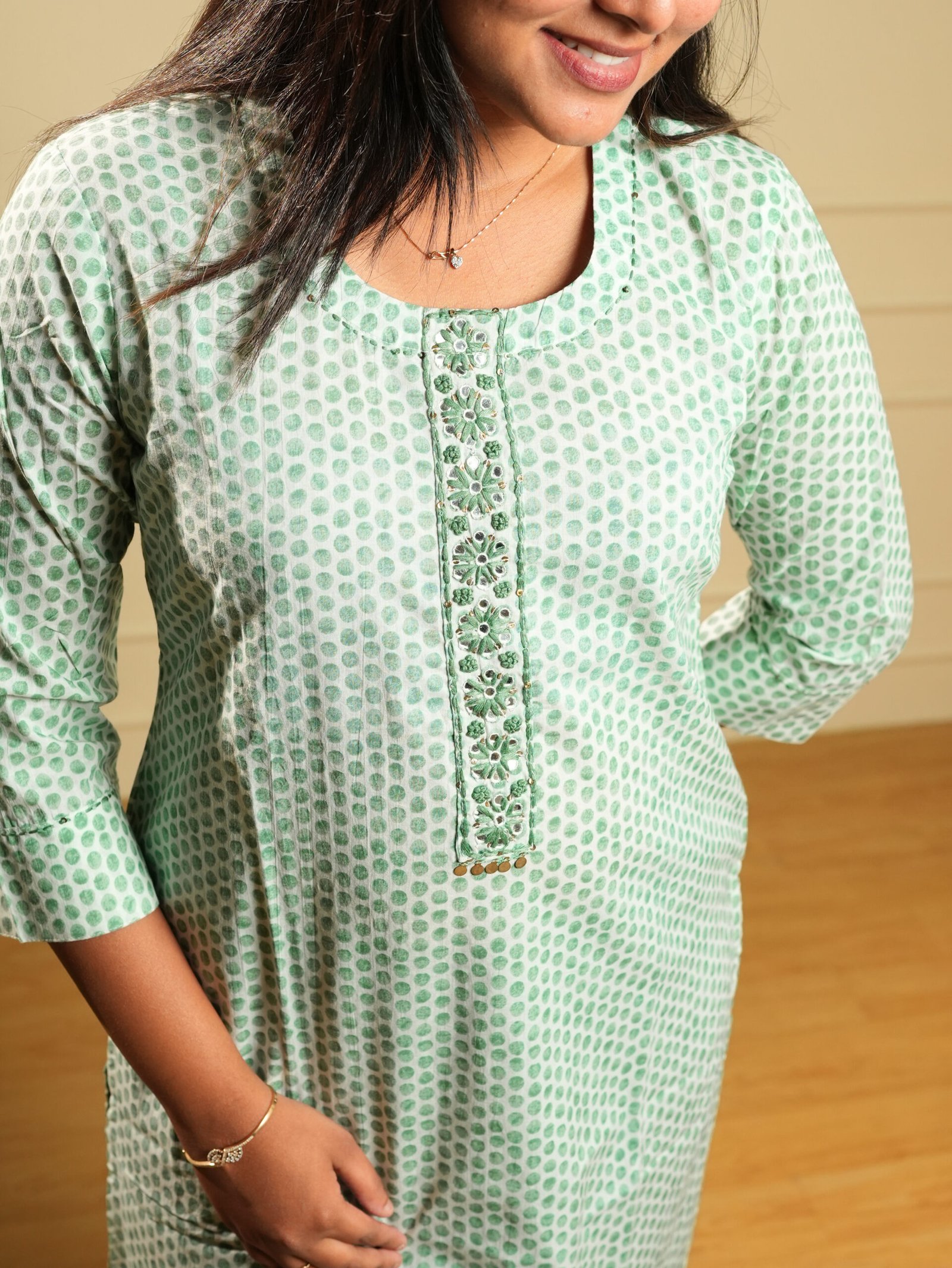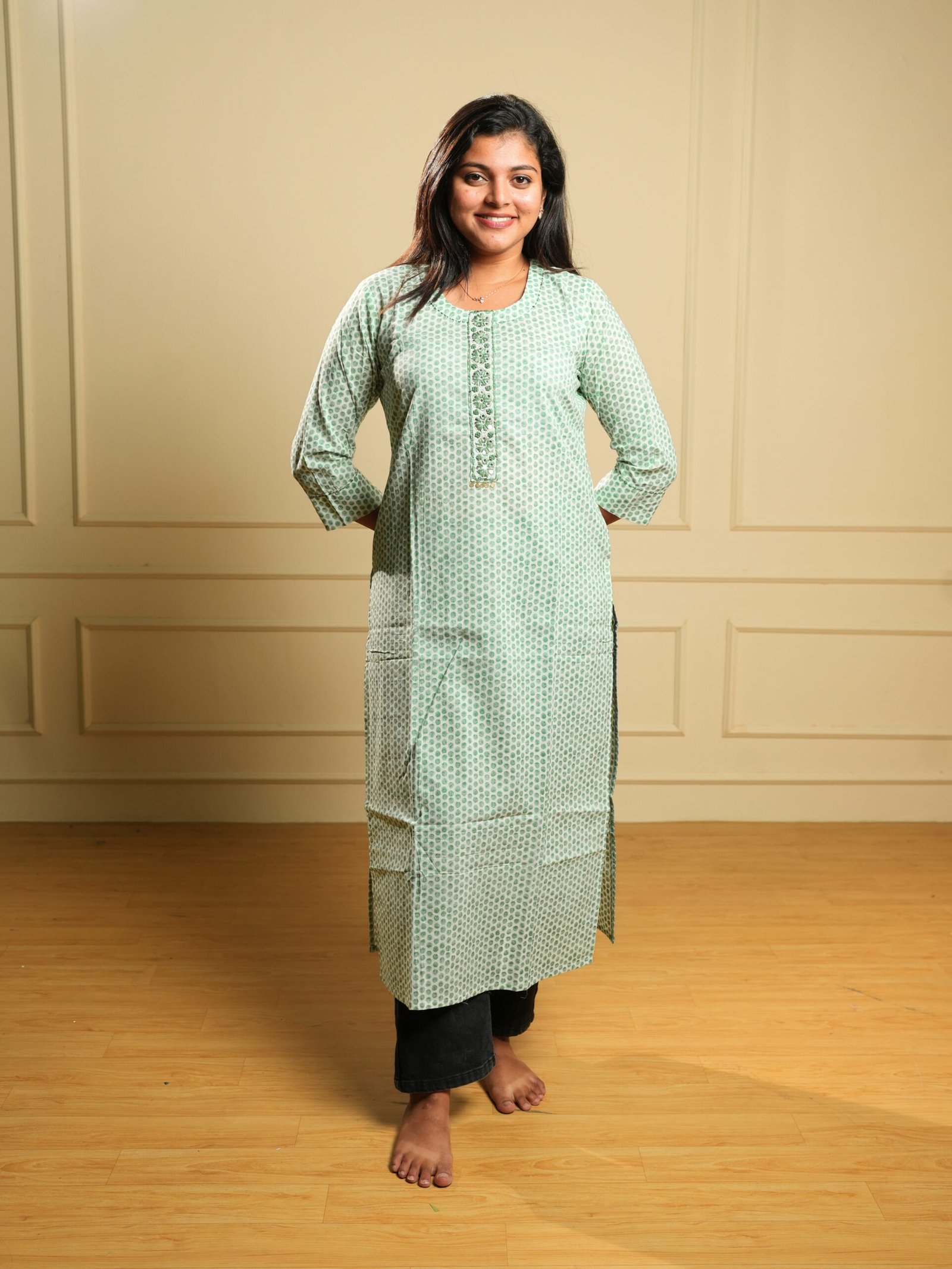 Refresh your ethnic collection with this graceful sage green printed cotton kurti, designed for effortless style and all-day comfort. Crafted from breathable, lightweight cotton fabric, this kurti is ideal for daily wear, office wear, and casual outings.